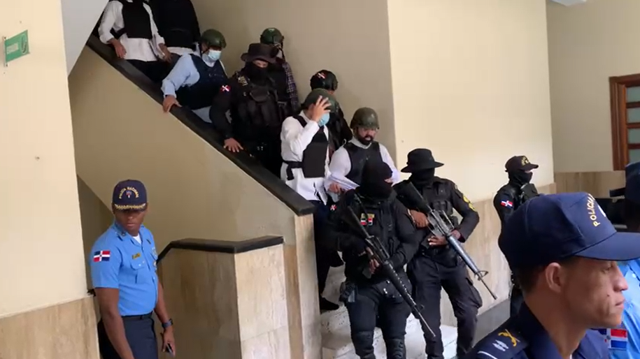 En estos momentos, los 10 imputados en el caso de desfalco a la ARS Seguro Nacional de Salud (SeNaSa) ingresan a la sala de la Oficina de Atención Permanente del Distrito Nacional, donde el juez Rigoberto Sena les conocerá la medida de coerción.